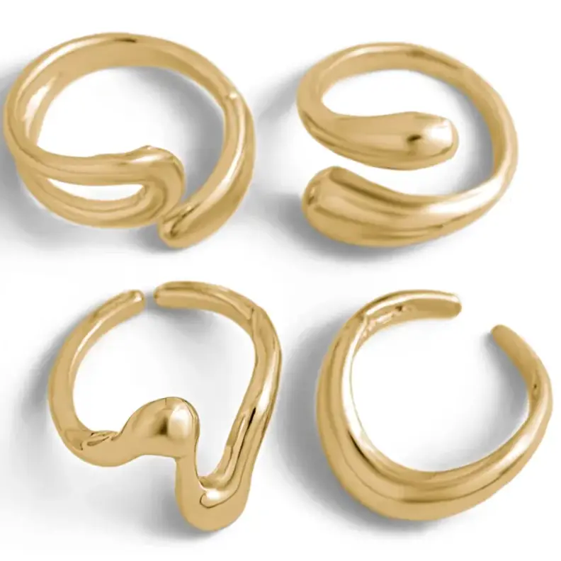 Набор колец Форма бижутерия золотистые 4 штуки