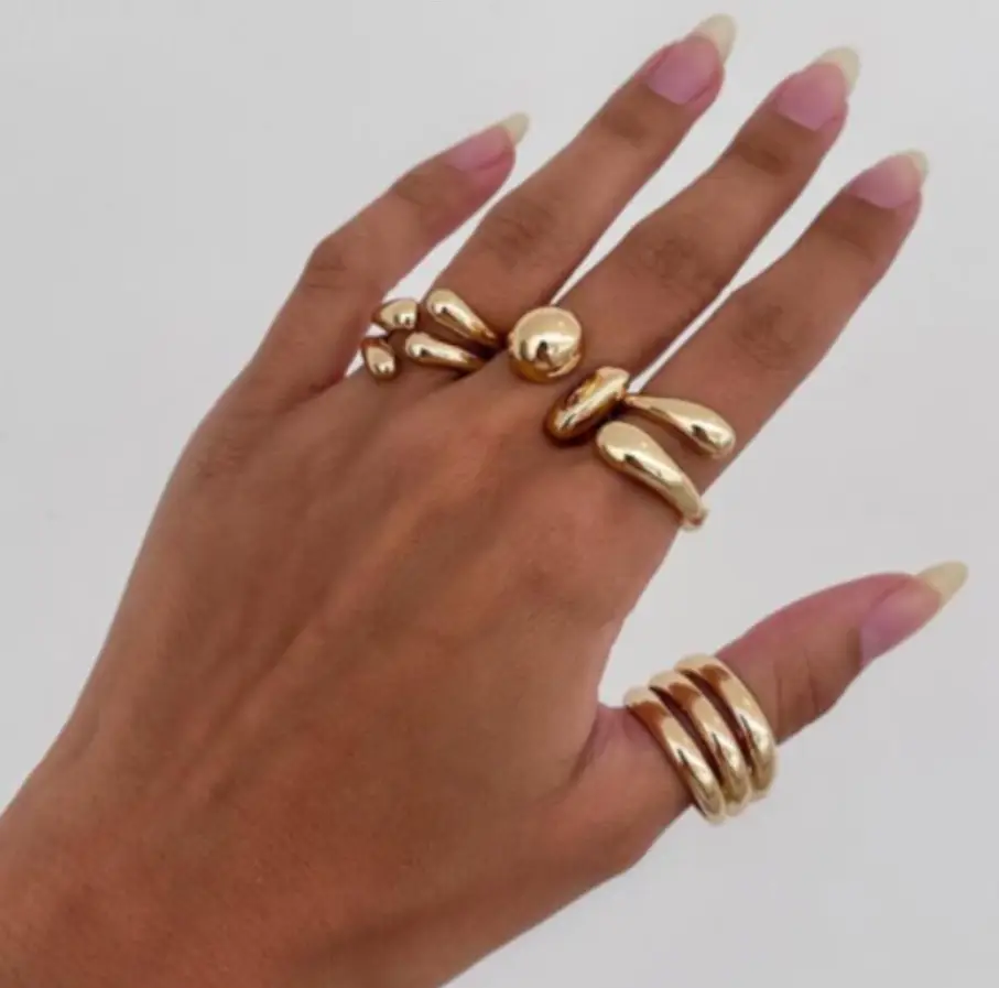 Кольца выполнены из высококачественного материала, который переливается на свету, добавляя нотку роскоши в ваш образ. Также кольца имеют современный геометрический дизайн, идеально подходящие для смелых модниц, стремящихся выделиться. Наши кольца классические и минималистичные, они станут отличным дополнением для повседневного стиля.