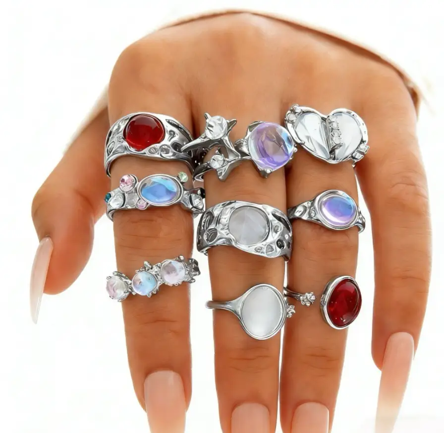 Кольца выполнены из высококачественного материала, который переливается на свету, добавляя нотку роскоши в ваш образ. Также кольца имеют современный геометрический дизайн, идеально подходящие для смелых модниц, стремящихся выделиться. Наши кольца классические и минималистичные, они станут отличным дополнением для повседневного стиля.