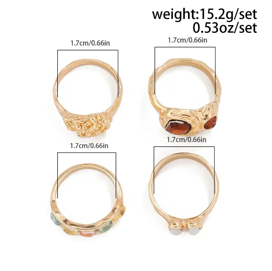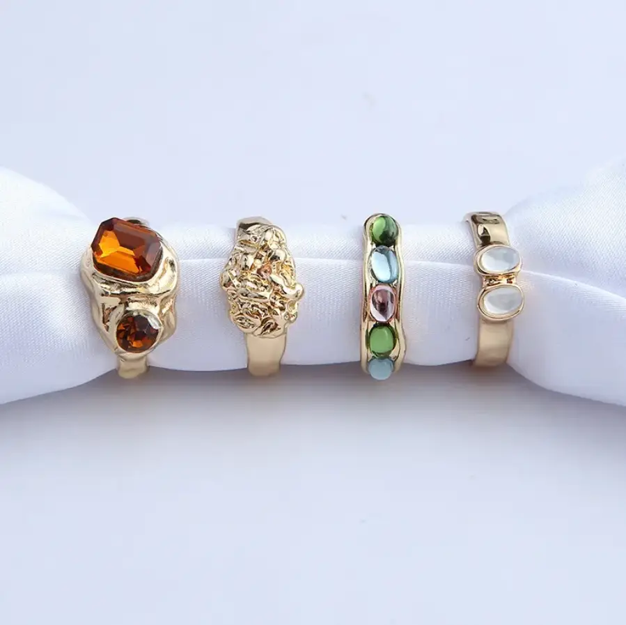 Набор колец с камнями золотистые 4 штуки