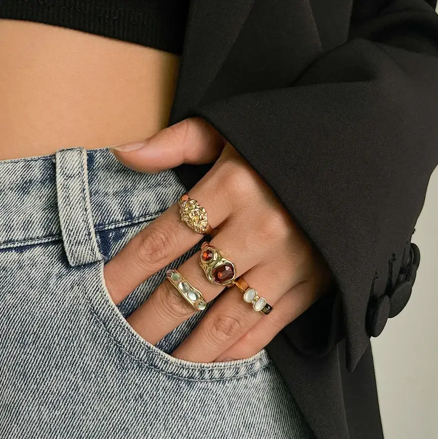 Кольца выполнены из высококачественного материала, который переливается на свету, добавляя нотку роскоши в ваш образ. Также кольца имеют современный геометрический дизайн, идеально подходящие для смелых модниц, стремящихся выделиться. Наши кольца классические и минималистичные, они станут отличным дополнением для повседневного стиля.