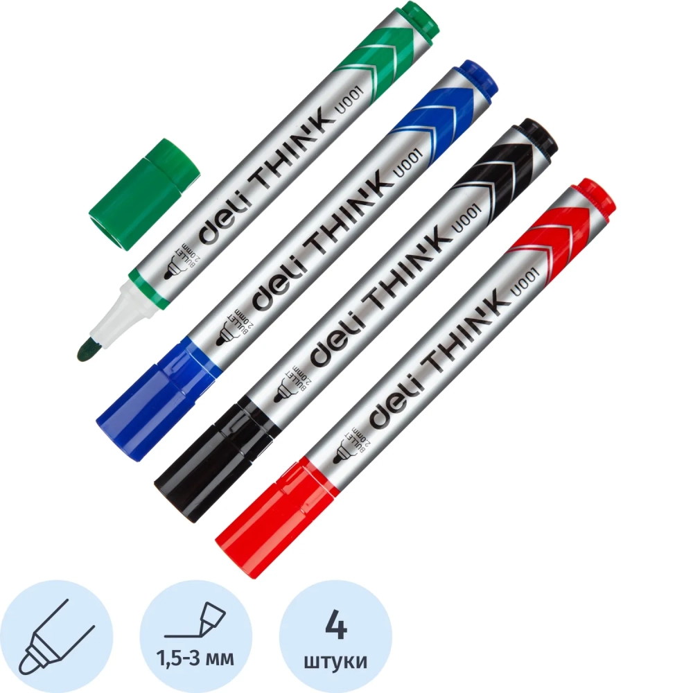 Набор маркеров для белых досок Deli Think 2 мм 4 цвета кругл.нак.EU00101