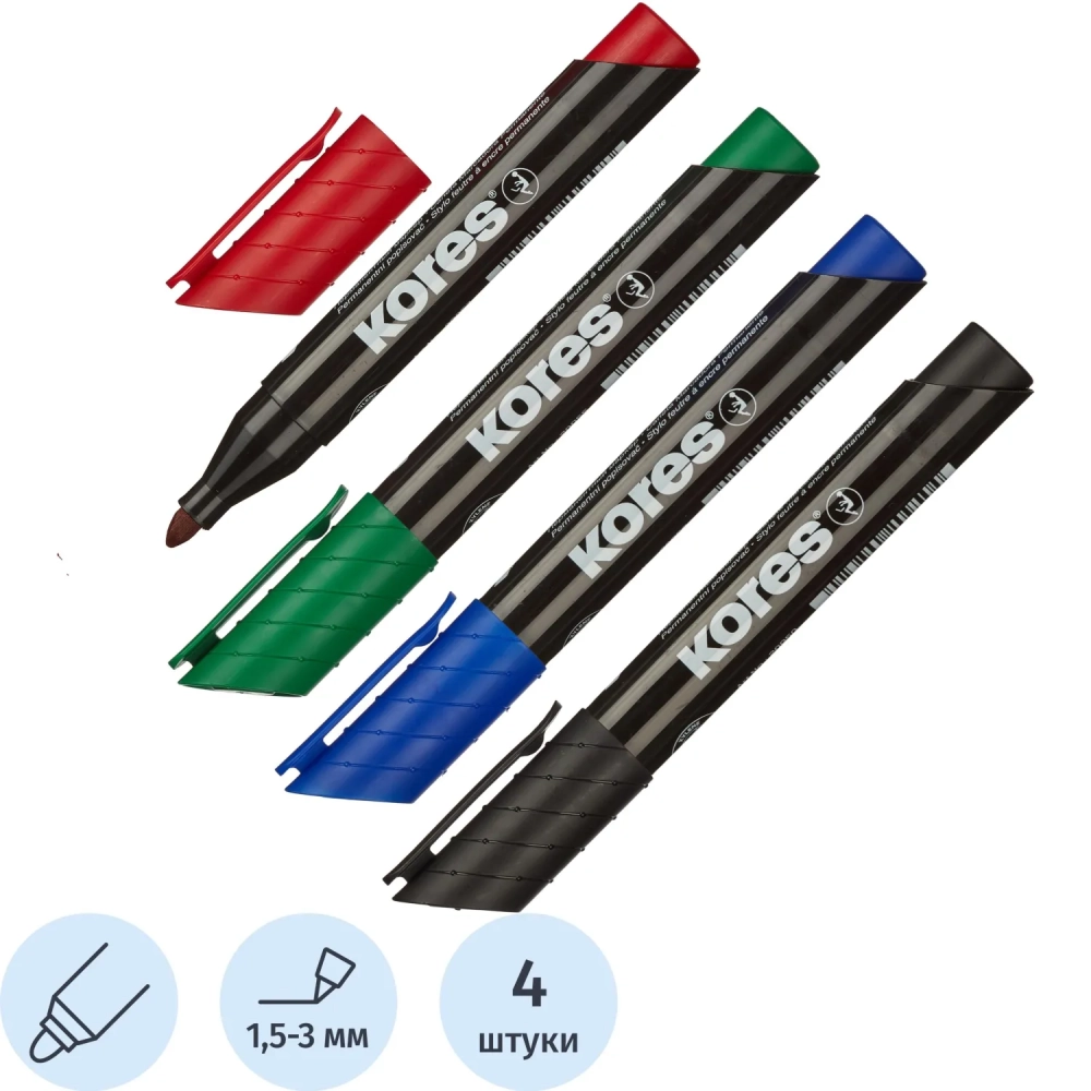 Набор маркеров перманентных KORES 1,5-3мм 4шт/уп 20943