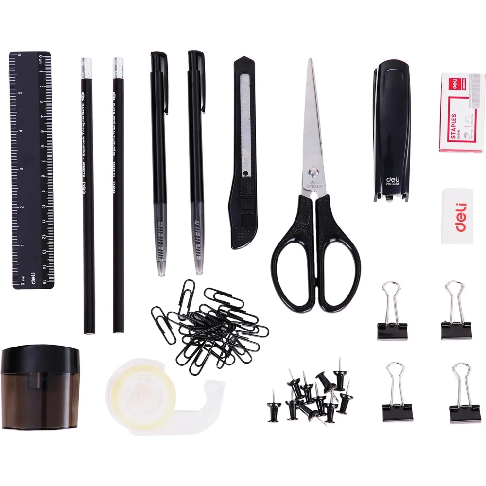 Набор настольный Deli E38251A 17 предметов черный вращающийся