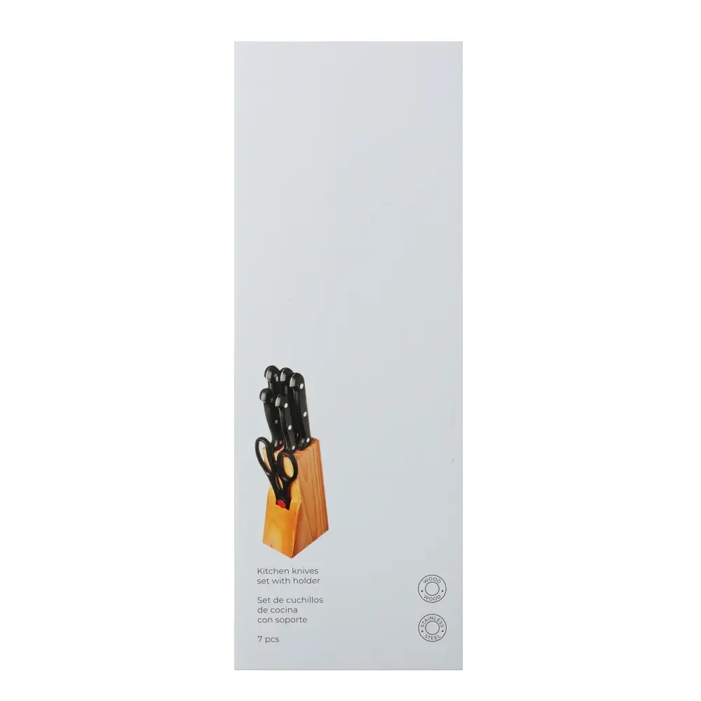 Набор ножей 7 пр. в дер.подставке: ножи кух. 8,5см, 12,5см, 14см, 19см, 19см, ножницы, подставка