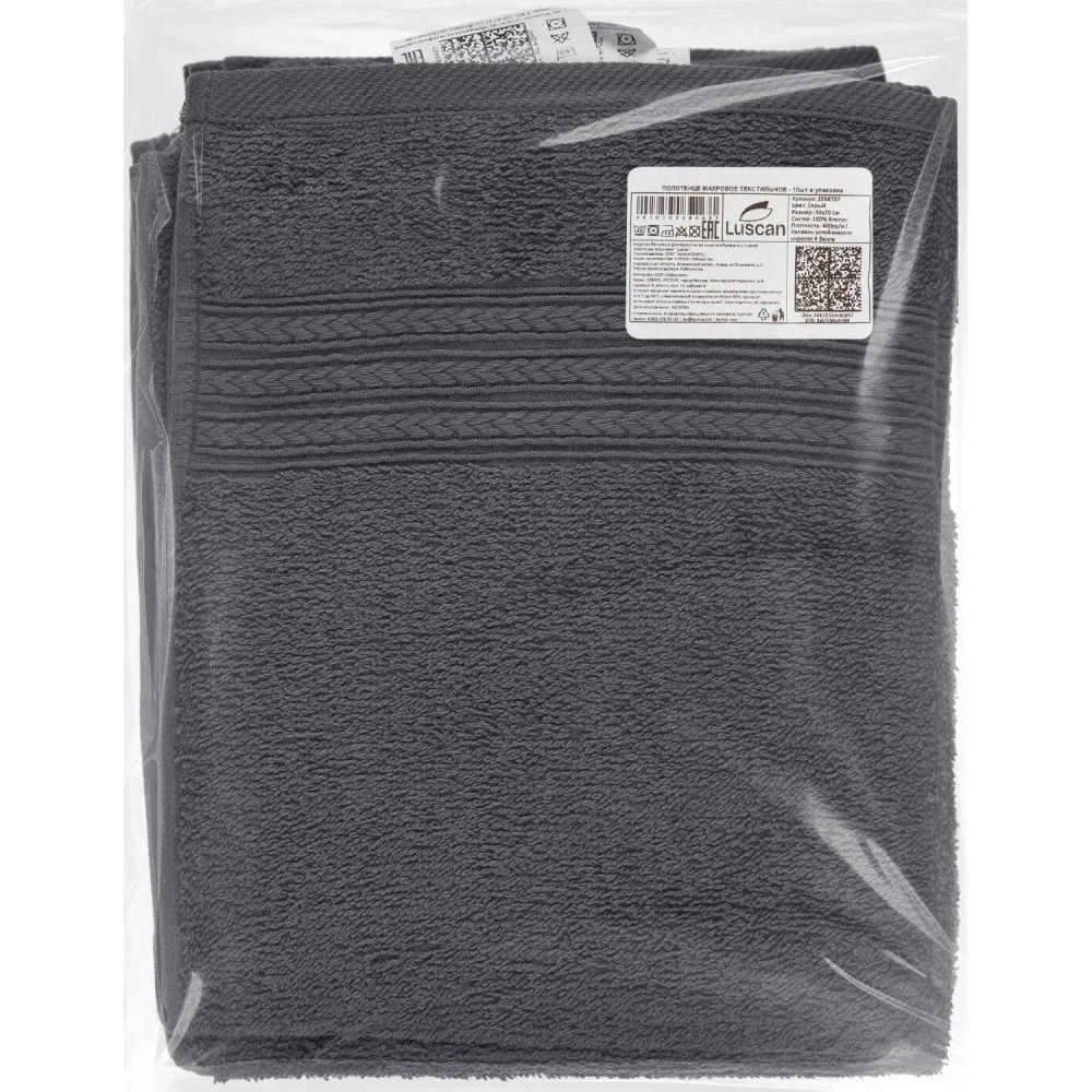 Набор полотенец махровых Luscan/бордюр 400г/м2, 40х70 серый, 10шт/уп