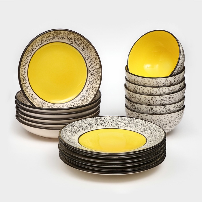 Набор посуды "Восточный", керамика, желтый, 18 предметов: 6 шт-20 см, 6 шт-25 см, 6 шт-15 см 700 мл , 1 сорт, Иран
