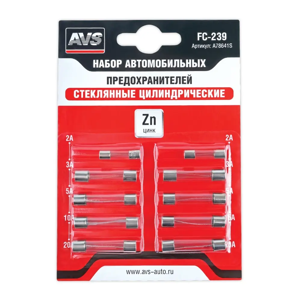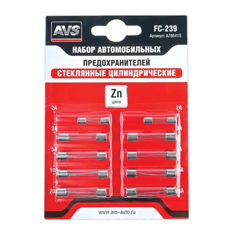 Набор предохранителей AVS FC-239 (цилиндрические стеклянные) в блистере