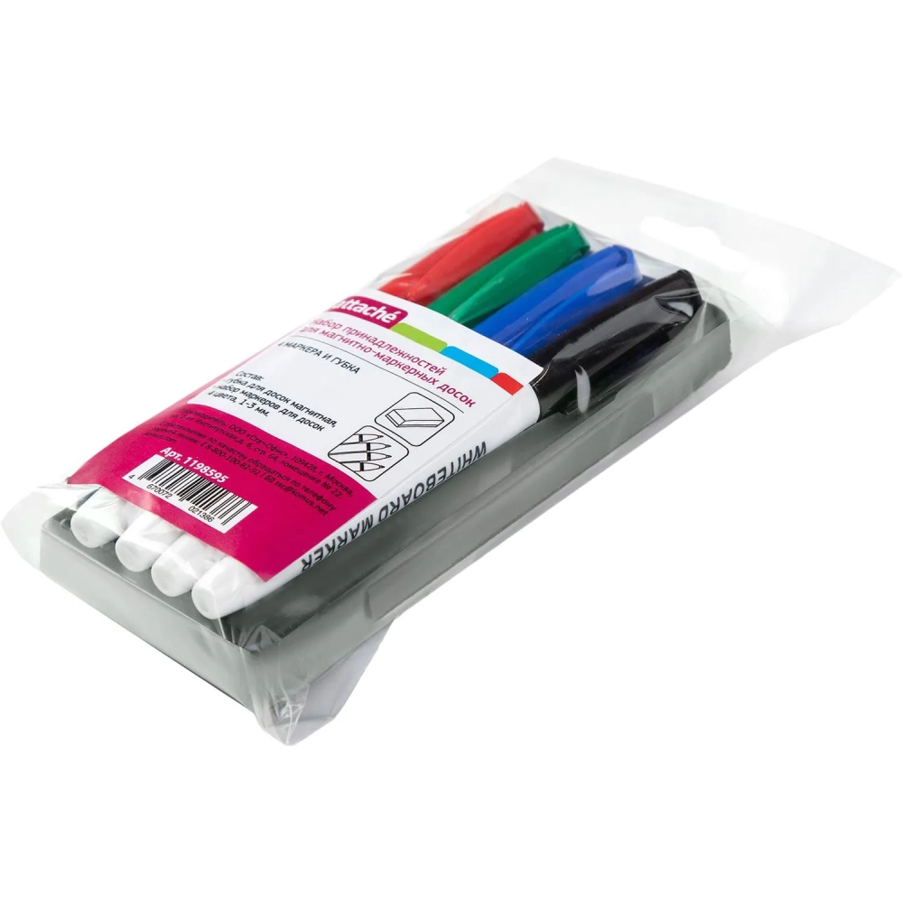 Набор принадлежностей для магнитно-маркерных досок Attache(губка,4 маркера)