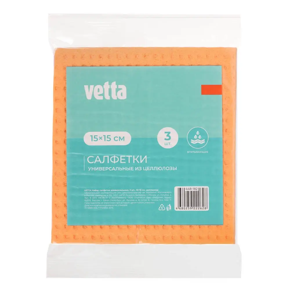 Представляем вашему вниманию универсальные салфетки от VETTA, которые станут вашим надежным помощником в различных задачах уборки. В этом наборе содержится 3 салфетки размером 15х15 см, выполненных из целлюлозы. Целлюлозный материал обеспечивает мягкость и прочность салфеток, делая их идеальным выбором для деликатных поверхностей, таких как стекло, зеркала или электроника.