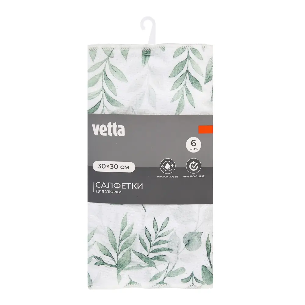 Набор салфеток из микрофибры тм VETTA Ботаника, 30х30 см, 200г/кв.м, полиэстер, 3 цвета, 6 шт