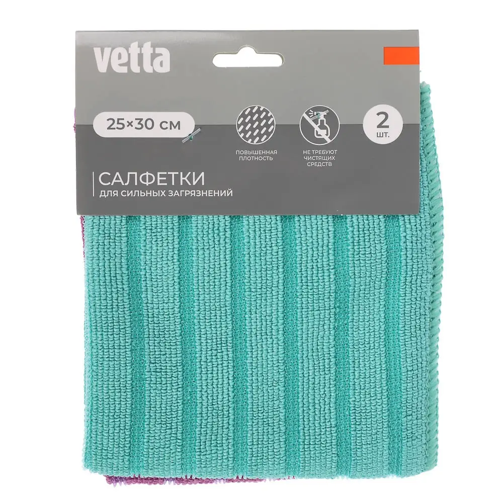 Набор салфеток из микрофибры тм VETTA, для сильных загрязнений, 2шт, 25х30см, 300г/кв.м, 4 цвета