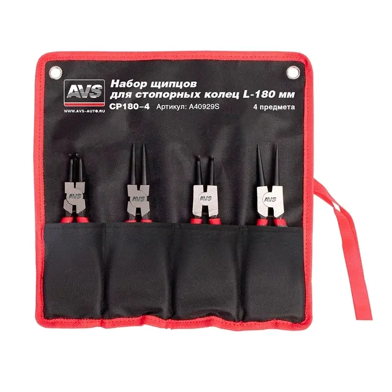 Набор щипцов для стопорных колец L-180мм, AVS CP180-4