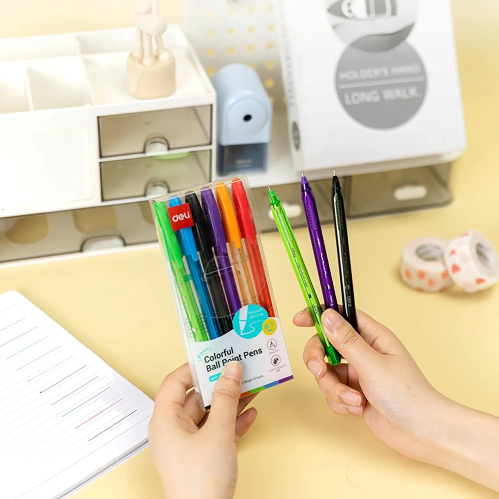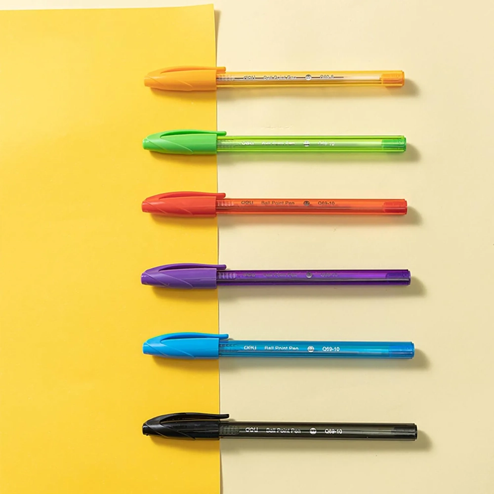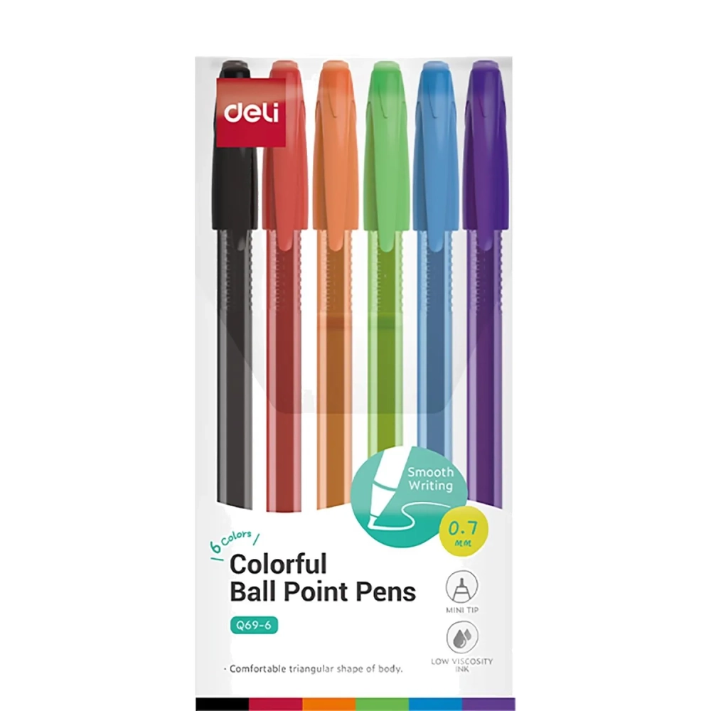 Набор шариковых ручек Deli EQ69-6,иг.нак 0,7,черн.пониж.вязк, 6 цвет
