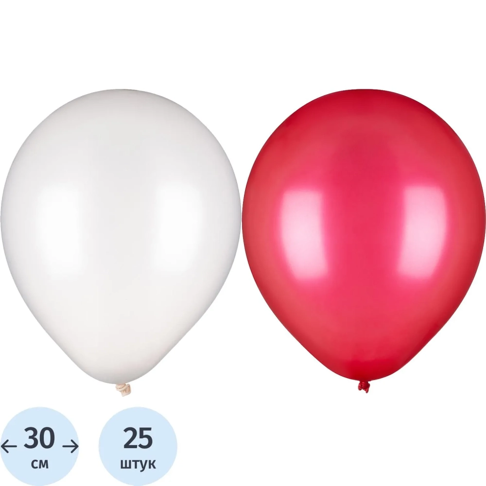 Набор шаров воздушн.праздн.пастель,цв белый,красный 25шт(латекс),30см,90358