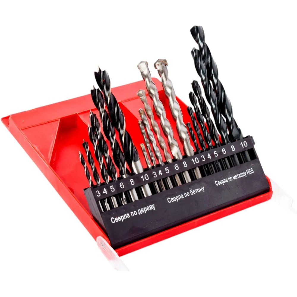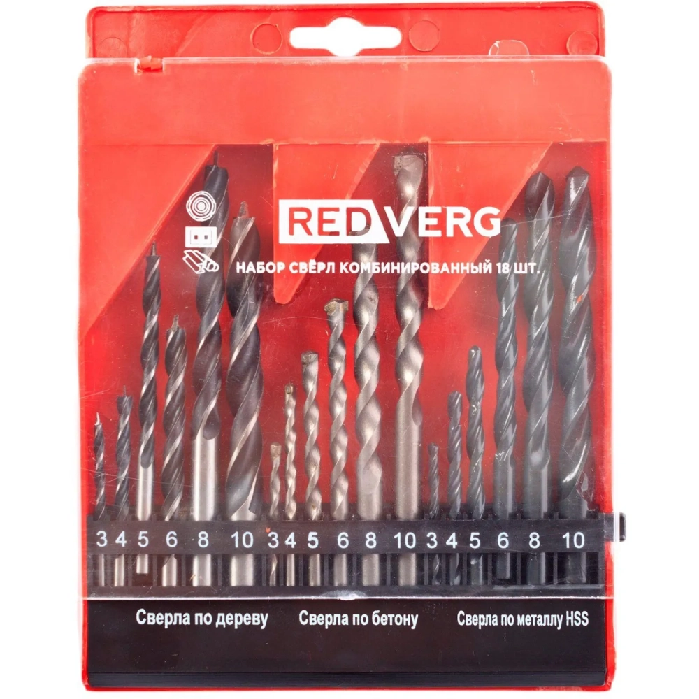 Набор сверл RedVerg по металлу/бетону/дереву 18 шт, 3-4-5-6-8-10мм (501091)