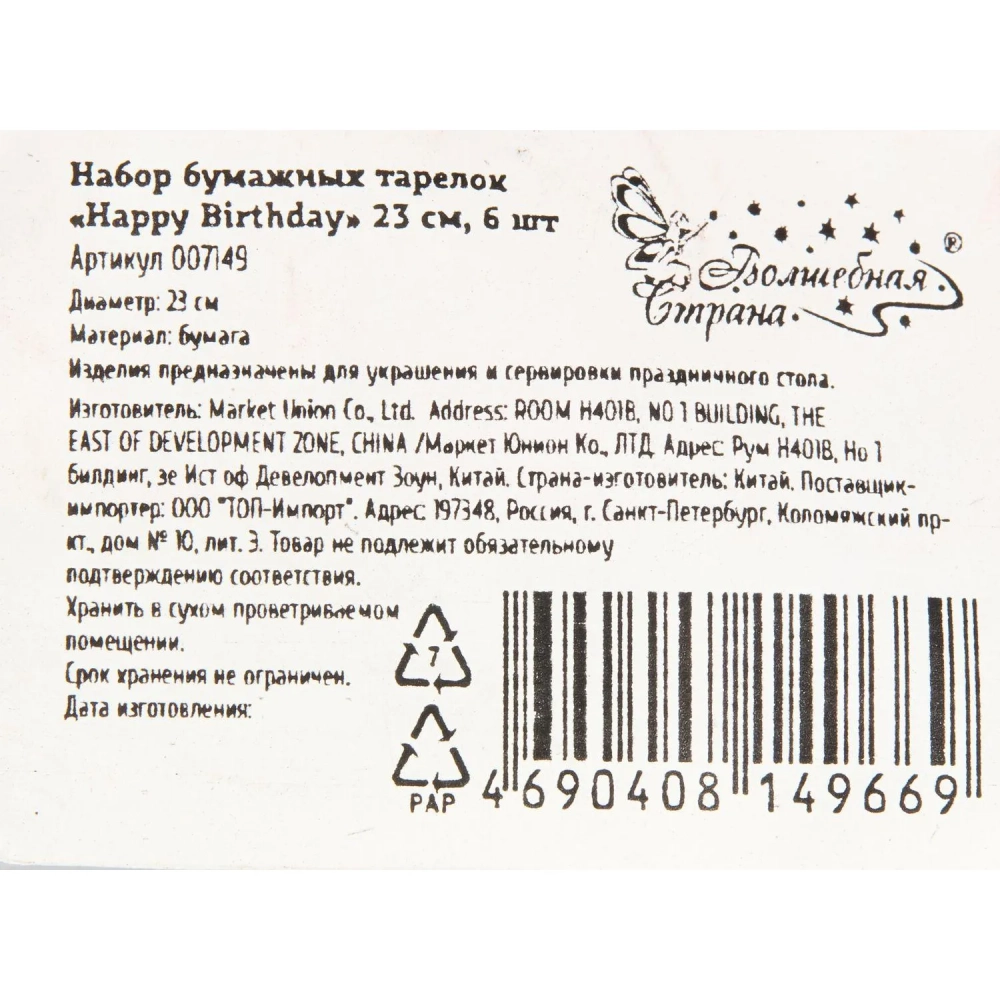 Набор тарелок Happy Birthday Волшебная страна 23 см, 6 шт, 007149