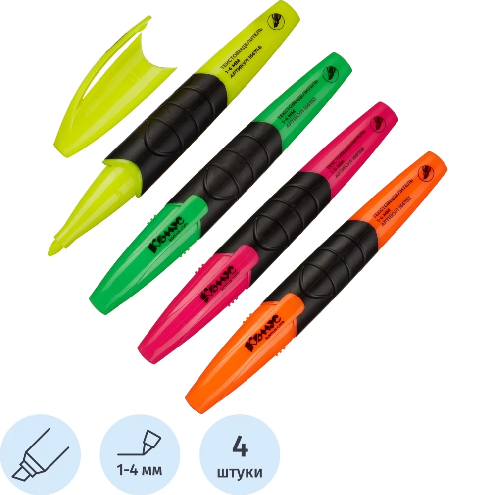 Набор текстовыделителей КОМУС HY2396 набор 4цв. 1-4мм