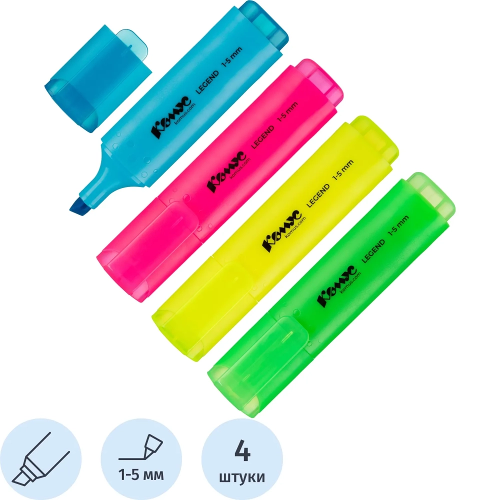 Набор текстовыделителей КОМУС Legend набор 4цв. 1-5мм
