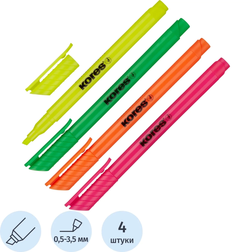 Набор текстовыделителей Kores 0,5-3,5 мм скош.након.наб.4цв.'36240