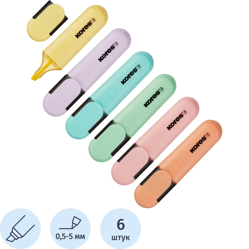 Набор текстовыделителей KORES BRIGHT LINER PLUS 6 цв, 36166