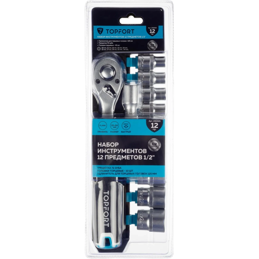 Набор торцевых головок с трещоткой Topfort 12 предмета 1/2