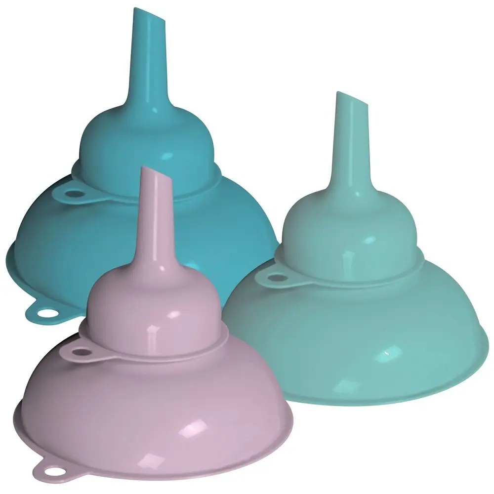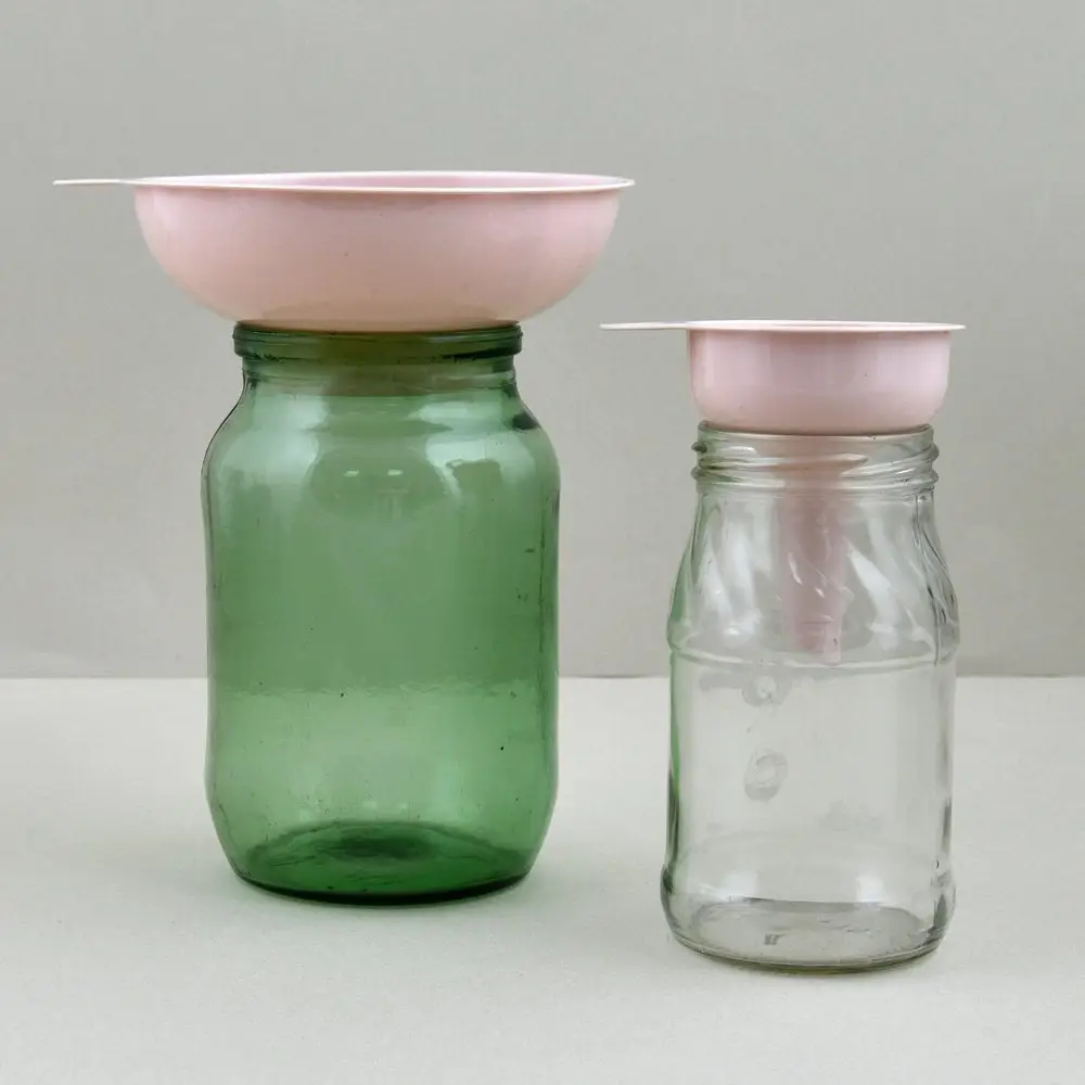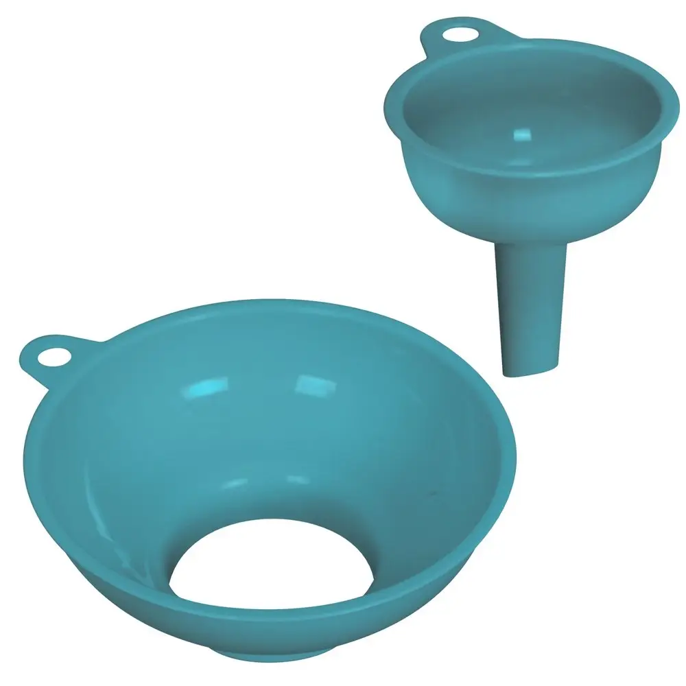 Набор воронок станет Вашим незаменимым помощником на кухне. Поможет Вам без потерь перелить жидкости в банки, отфильтровав при этом все лишнее. Великолепно подходит при консервировании в процессе заполнения банок и бутылок жидким содержимым. Их можно использовать как по отдельности для емкостей с разным диаметром горлышка, так и вместе-для этого достаточно большую воронку вставить в маленькую.