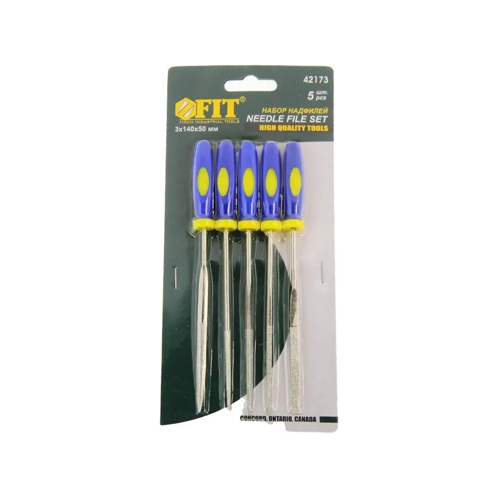 Надфили алмазные с мягкой ручкой 3 х 140 х 50 мм 5 шт/уп, Fit 42173