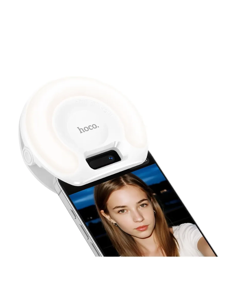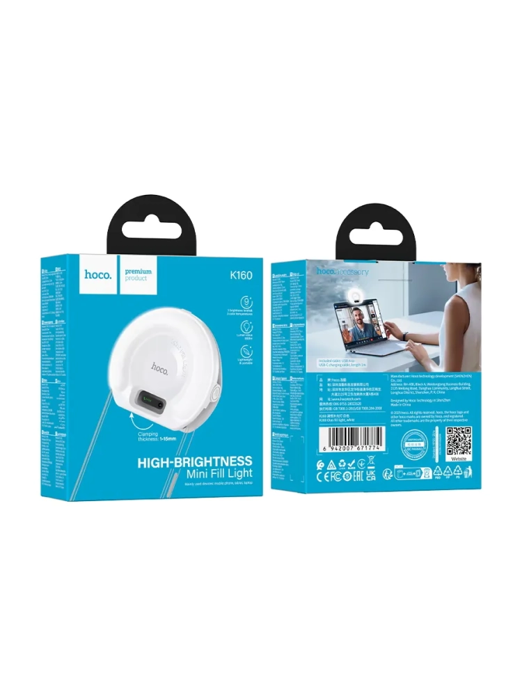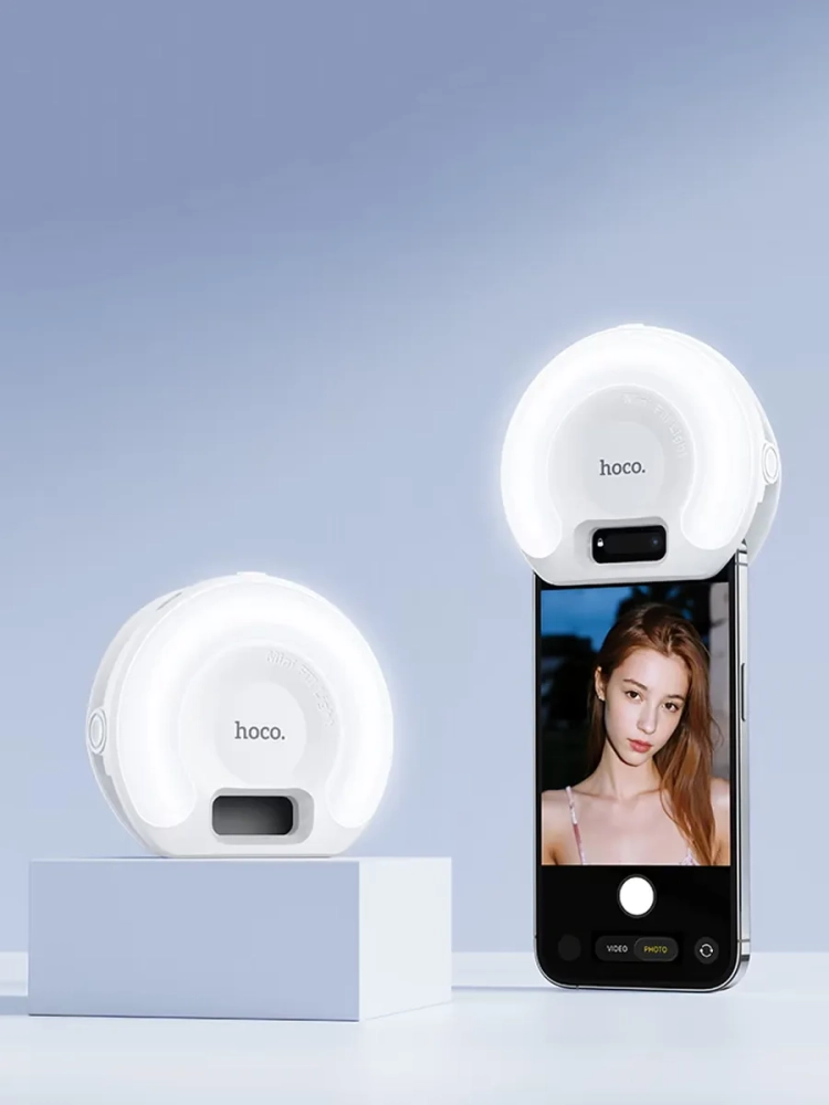 Дополнительная светодиодная подсветка Hoco K160 Olas для смартфонов и ноутбуков Hoco K160 Olas — это компактная ультратонкая лампа-клипса, предназначенная для улучшения качества освещения во время фото- и видеосъемки, проведения трансляций или видеоконференций. Устройство отличается легким весом и универсальным креплением, что позволяет использовать его как с мобильными телефонами, так и с планшетами или ноутбуками.