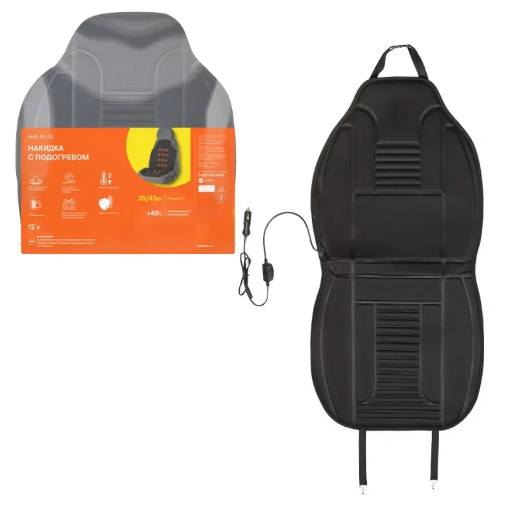 Применяется для дополнительного обогрева водителя и пассажиров при пониженых температурах. Представляет собой накидку на сиденье из полиэстера с нагревательным элементом. Питание от бортовой сети 12V через гнездо прикуривателя.Накидка оснащена пультом для регулировки нагрева. Накидка устанавливается на сидение автомобиля с помощью крепежей и оснащает его системой подогрева. Функционирование изделия осуществляется за счет подключения к сети мощностью 12В.Спинка накидки имеет особый рельеф, обладающий массажными свойствами, что позволяет увеличить уровень комфорта при нахождении в автомобиле. Максимальный уровень температуры нагрева составляет +45C. Для безопасности использования накидки оснащены термистром , который отключает накидку при нагреве +65С.