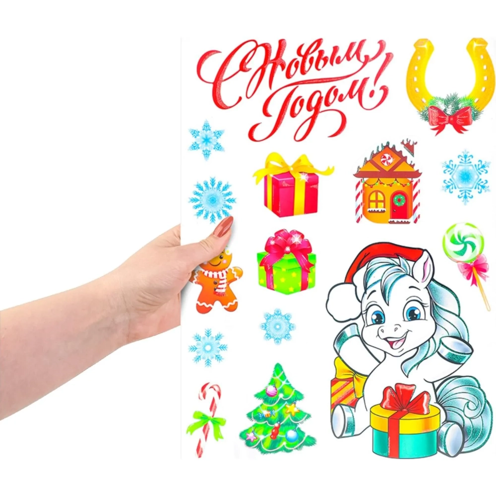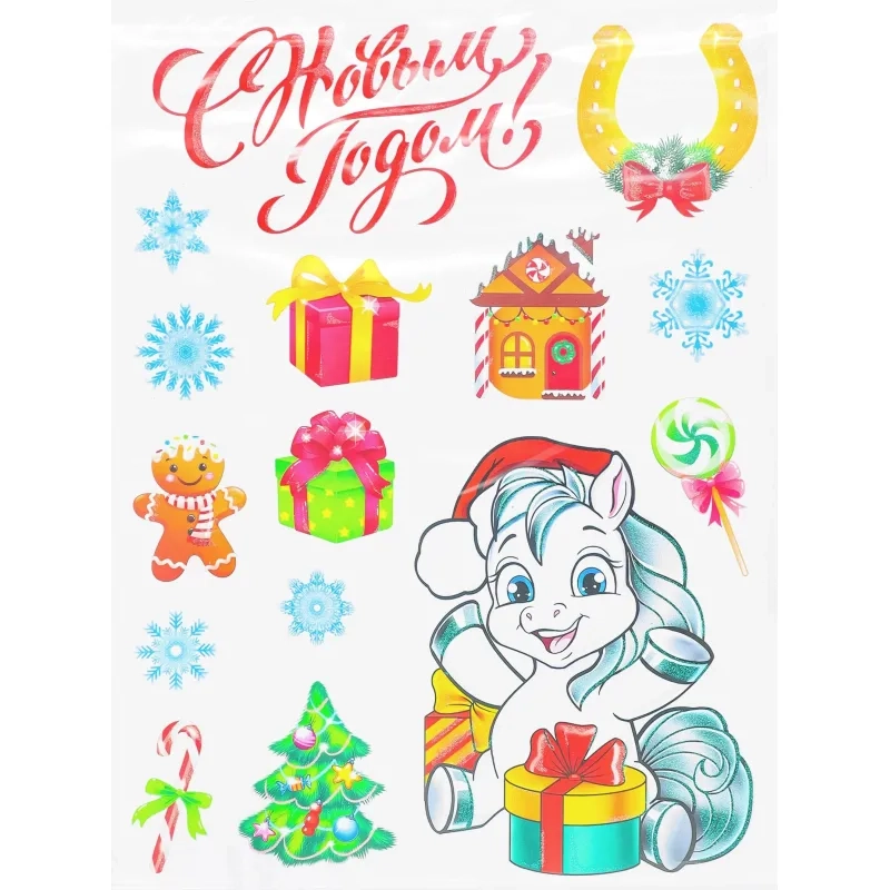 Наклейка НГ оконное украшение с раскраской Милая лошадка, 30х40см НН-3119