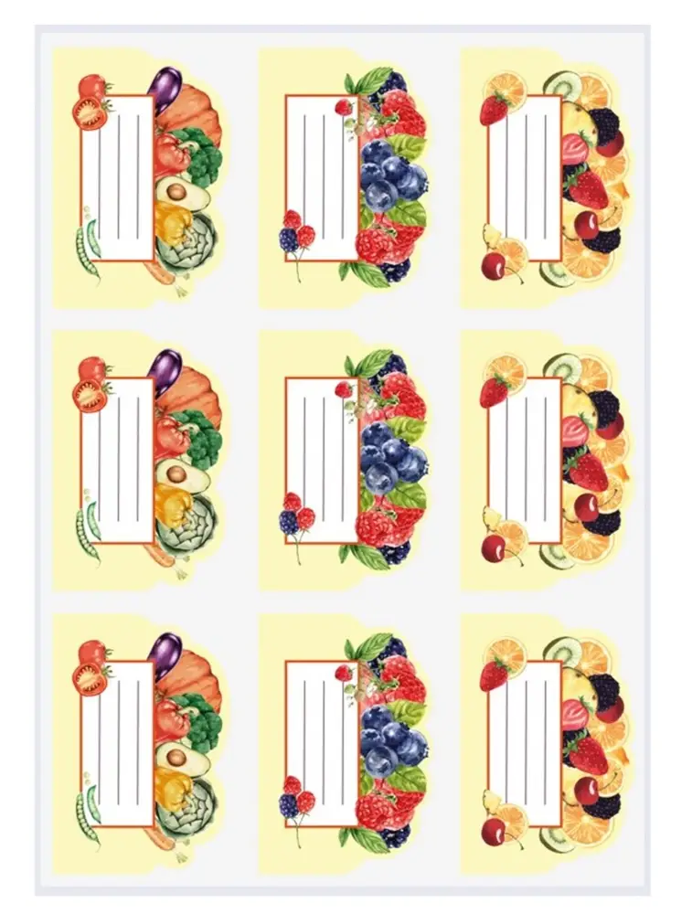 Самоклеящиеся наклейки предназначены для маркировки банок с овощными заготовками, салатами, вареньем, компотами. Также подойдут для маркировки крышек, контейнеров и баночек со специями и крупами. С помощью ярких наклеек вы сможете сохранить информацию о домашней заготовке, и указать дату изготовления. Клеить можно на любые не слишком рельефные поверхности. Поверхность должна быть чистая, сухая и обезжиренная. Наклейки расположены на листе, прорезаны по контуру, снимите ее с подложки и нанесите на поверхность.