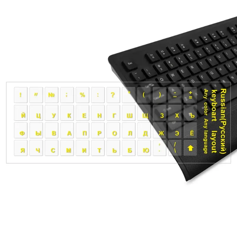 Наклейки на клавиатуру прозрачные желтые буквы #4