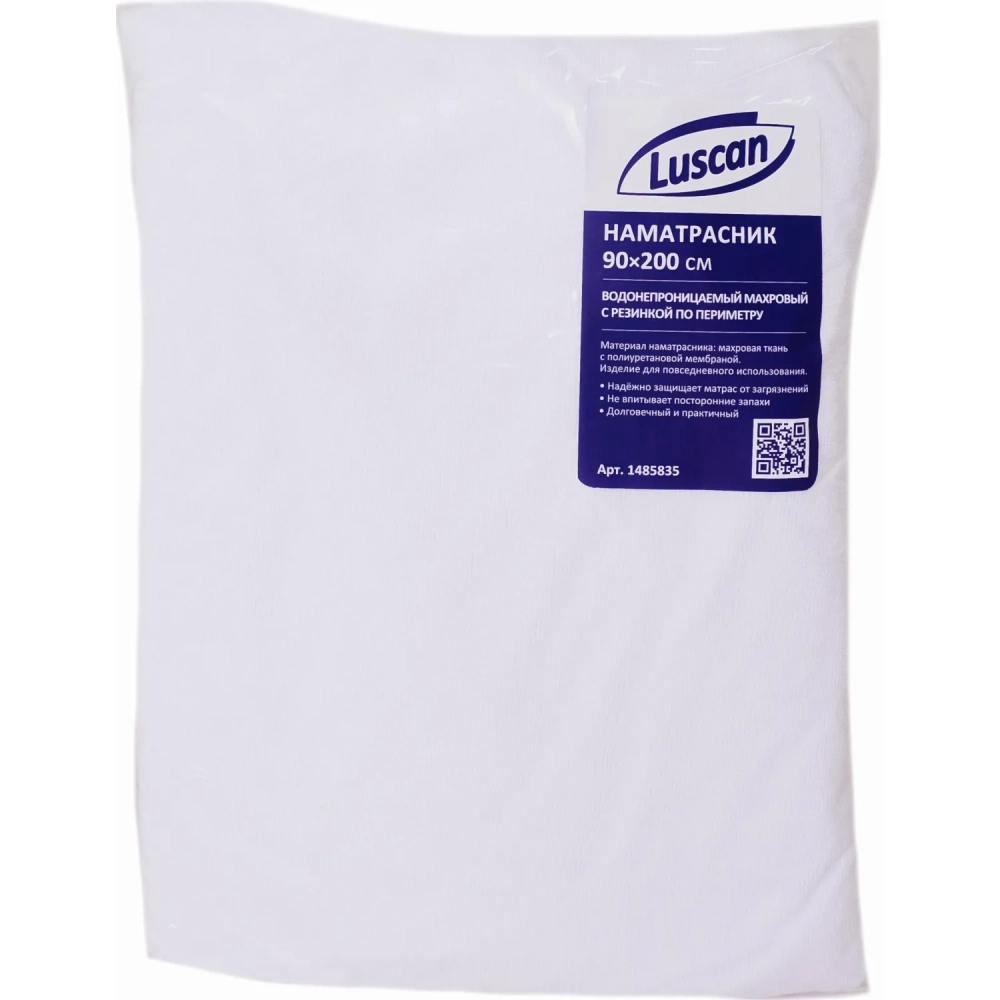Наматрасник Luscan 90х200, махра, водонепроницаемый, чехольный, белый