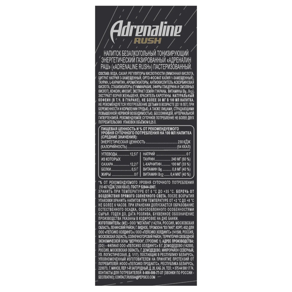 Напиток энергетический Adrenalin Rush 0,25л