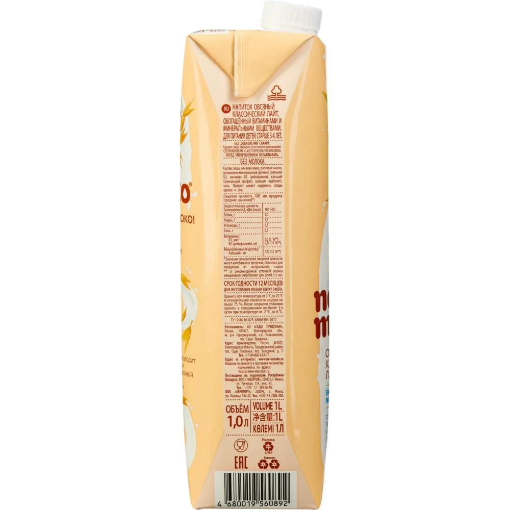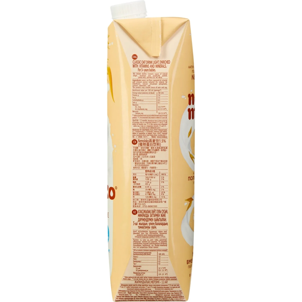 Напиток растительный Nemoloko Классич овсян лайт с кальц и витам В2 1,5% 1л