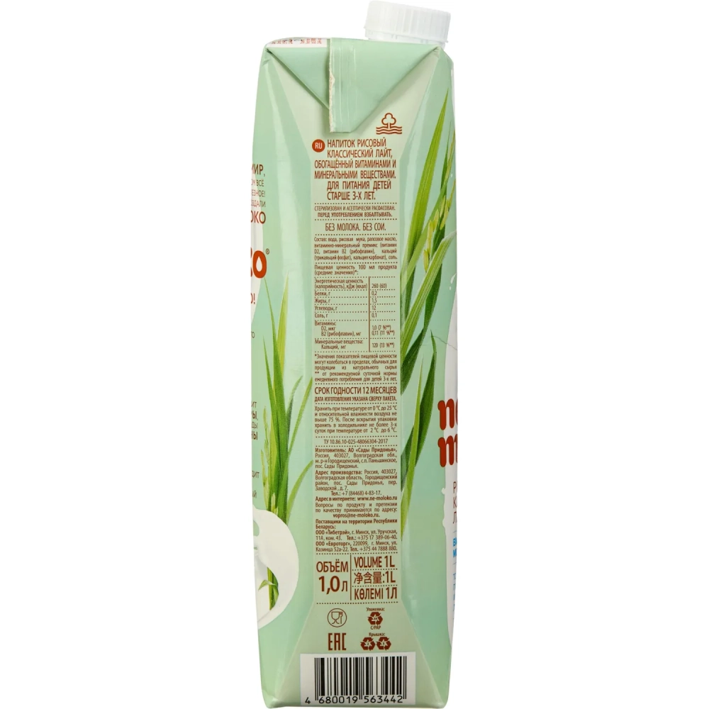 Напиток растительный Nemoloko Классический рисовый лайт 1л 68203