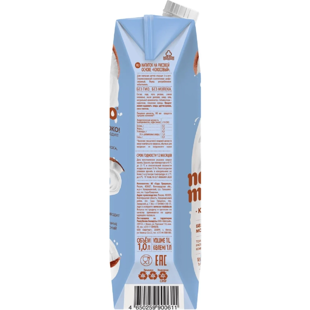 Напиток растительный Nemoloko напиток на рисовой основе Кокосовый 1л