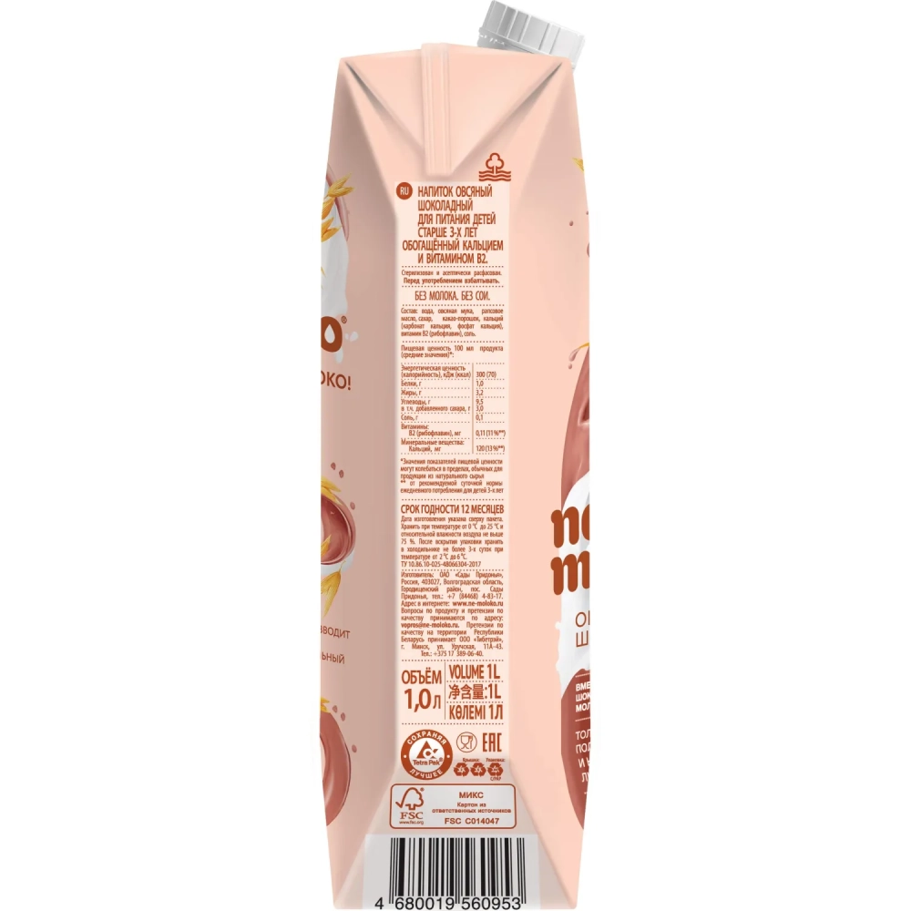 Напиток растительный Nemoloko овсяный шоколадный 1л