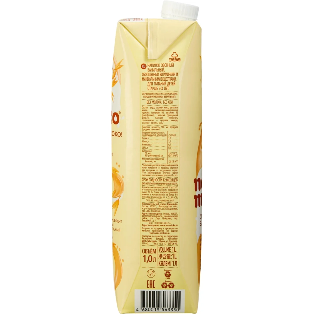 Напиток растительный Nemoloko Ванильный овсяный 1л
