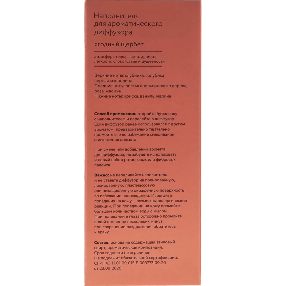 Наполнитель для аромадиффузора Hygge 8 Ягодный щербет 100 мл, АР 100-322