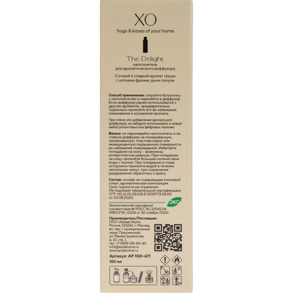 Наполнитель для аромадиффузора XO The Delight 100мл, АР 100-671