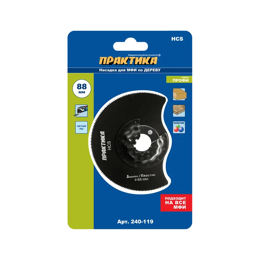 Насадка для МФИ отрезная полукруг HCS по дереву 88 мм мелкий зуб, Практика 240-119