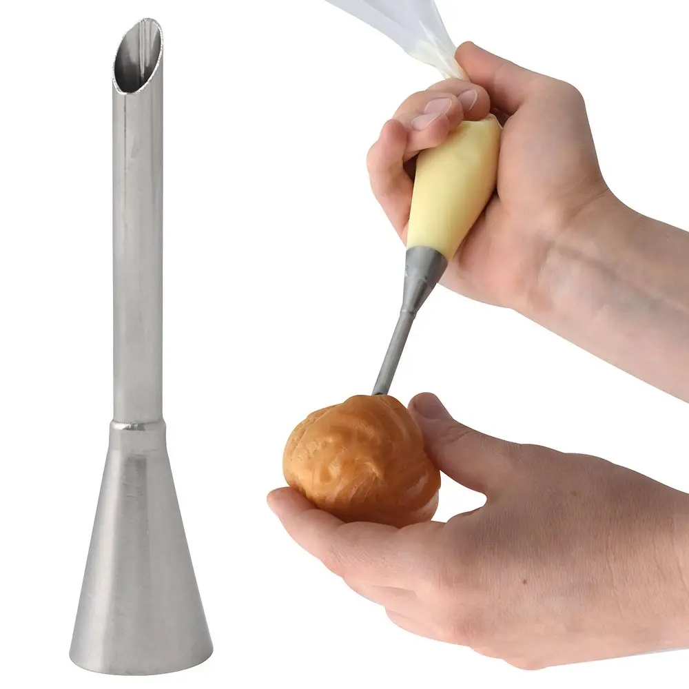 Домашние эклеры и профитроли — это вкусное лакомство, приготовленное по любимым рецептам с тщательно подобранными ингредиентами. Чтобы приготовить десерт по всем правилам, следует позаботиться о том, как поместить начинку. Для этого есть специальные насадки, которые делают небольшое отверстие для заполнения начинкой, не оставляя при этом следов и разрезов.