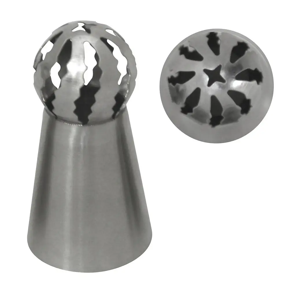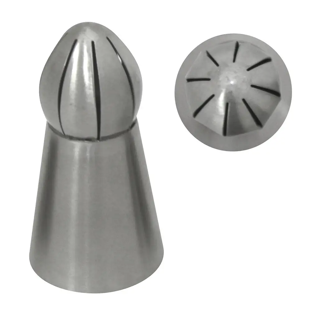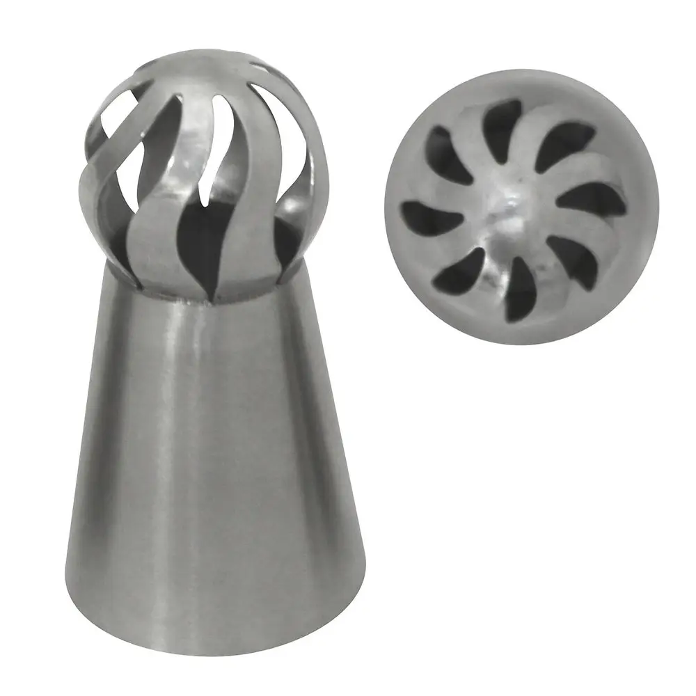 Насадки типа «восточная роза» идеально подходят для украшения капкейков. С помощью приспособления можно сделать объемные высокие шапочки из крема. Особенность рисунка крема будет зависеть от расположения прорезей, они могут быть ровными, волнистыми, ажурными. Насадки из нержавеющей стали не портятся во влажной среде, не гнутся и не ломаются. Разрезы расположены симметрично, это обеспечивает ровный декор.