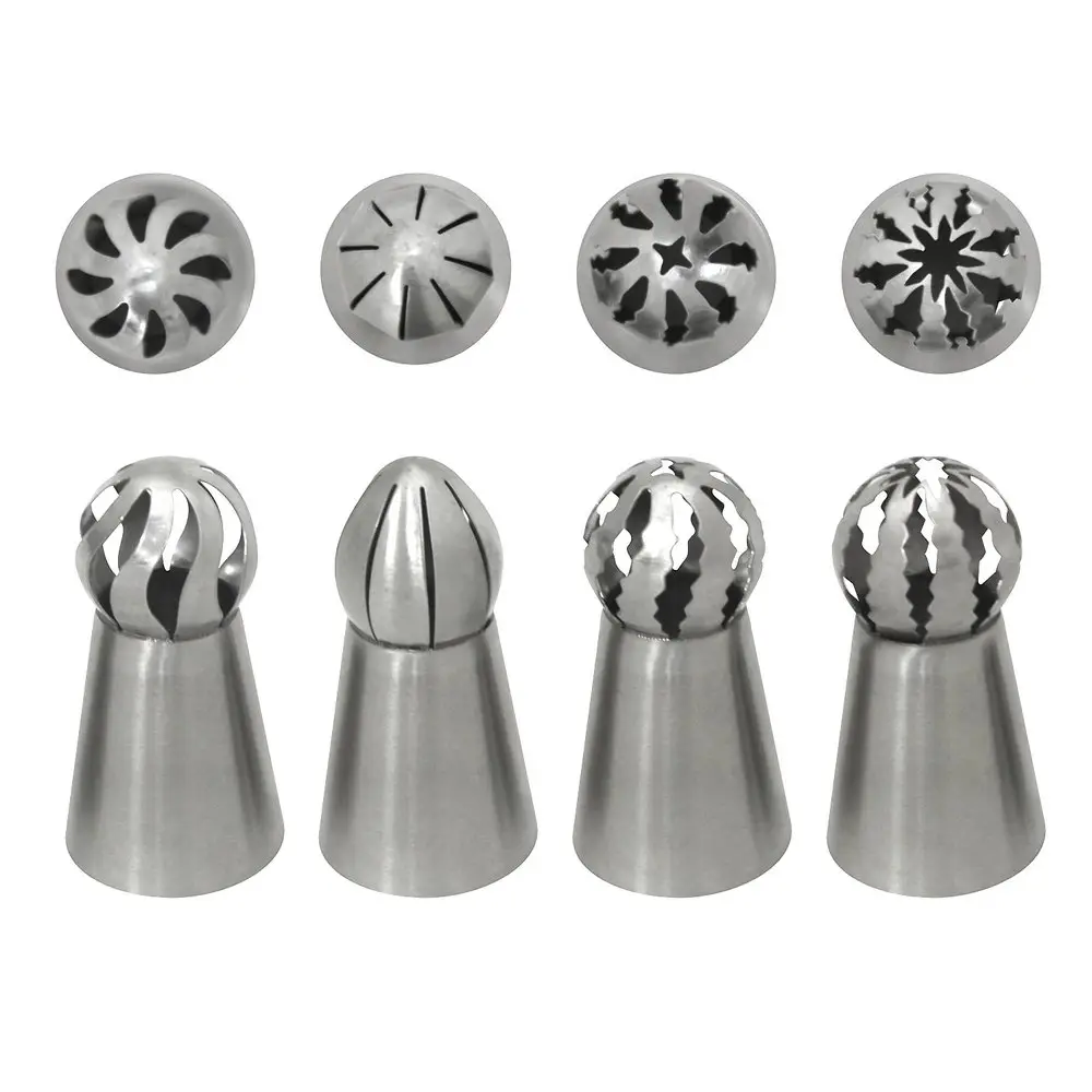 Насадки подойдут к стандартным переходникам и могут использоваться с одноразовыми кондитерским и мешками. После применения промойте водой с моющими средствами. Для очистки удобно использовать узкий ершик.
