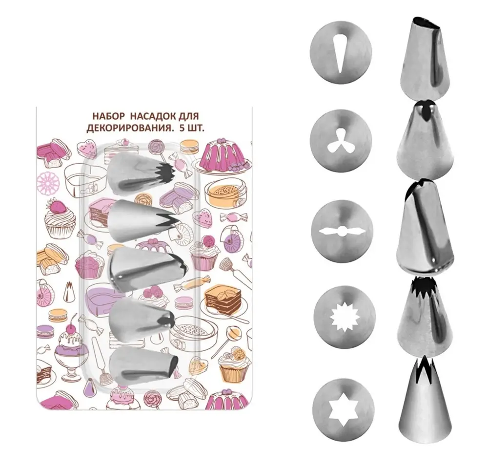 Насадки кондитерские набор 5 шт диаметр 2,5 см высота 4,5 см