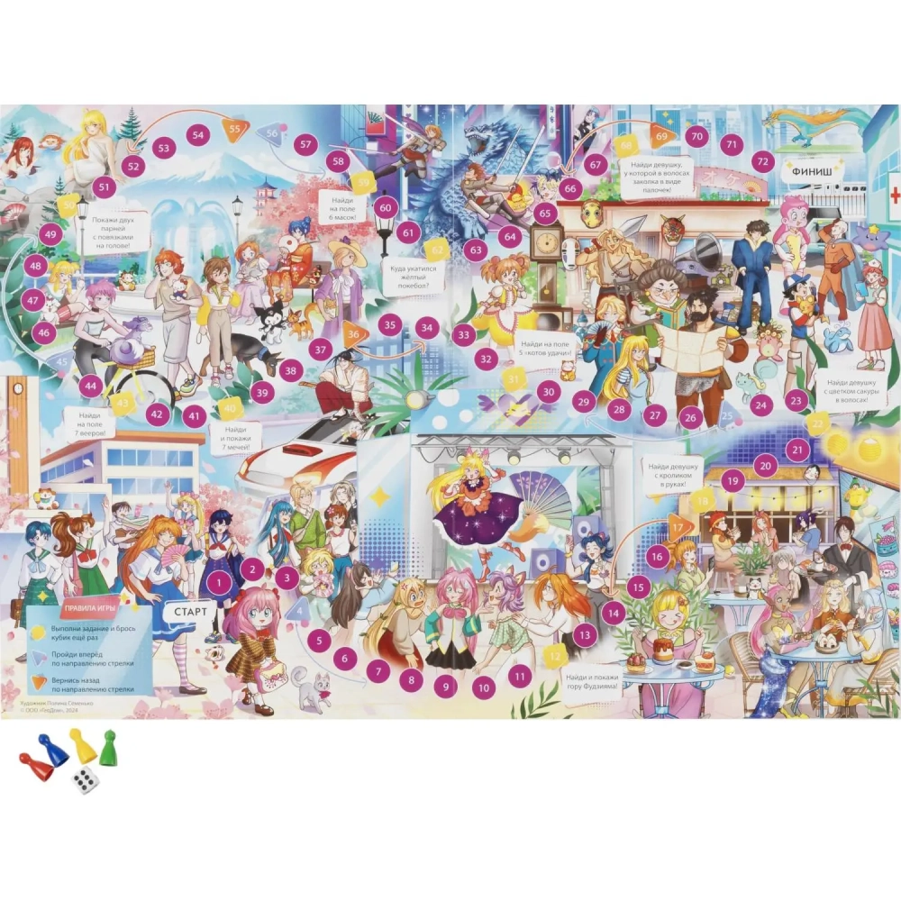 Настольная игра ходилка с фишками. Аниме-таун. 59,5х42 см. ГЕОДОМ