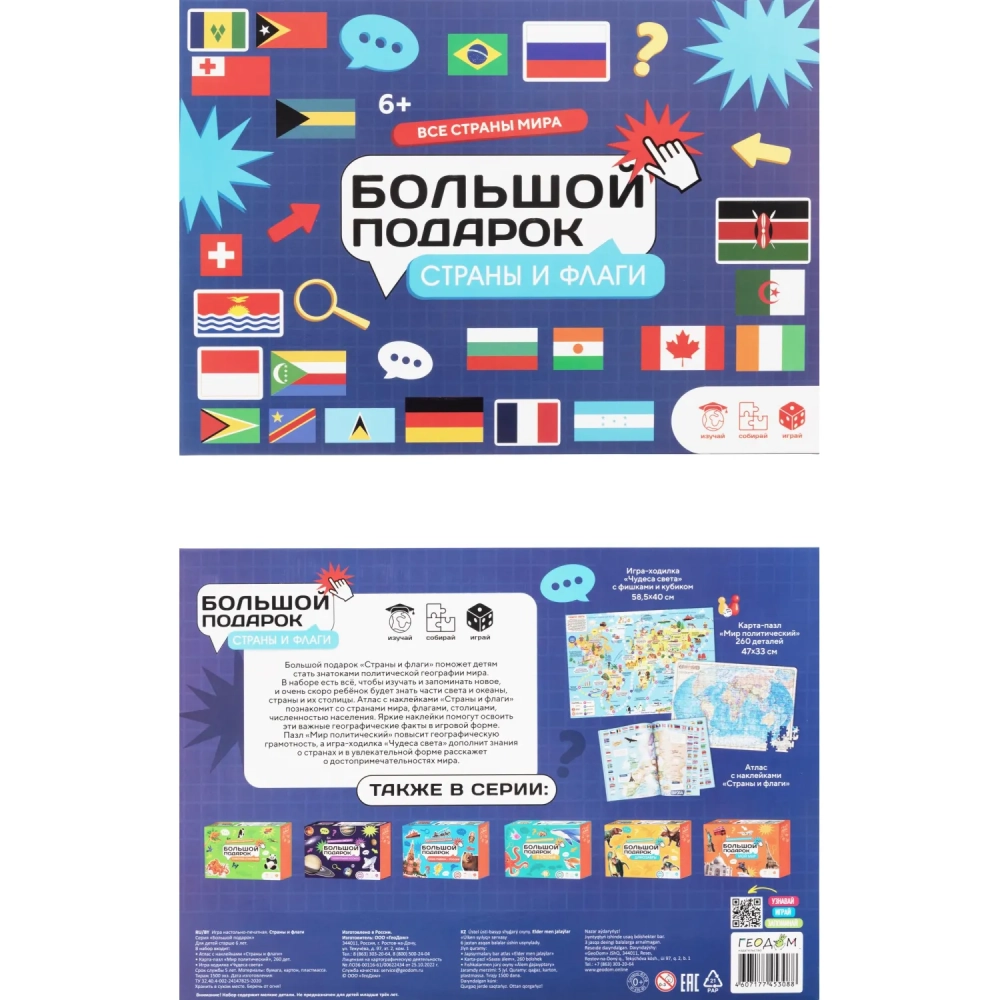 Настольная игра Страны и флаги набор Пазл+Атлас+ Игра-ходилка