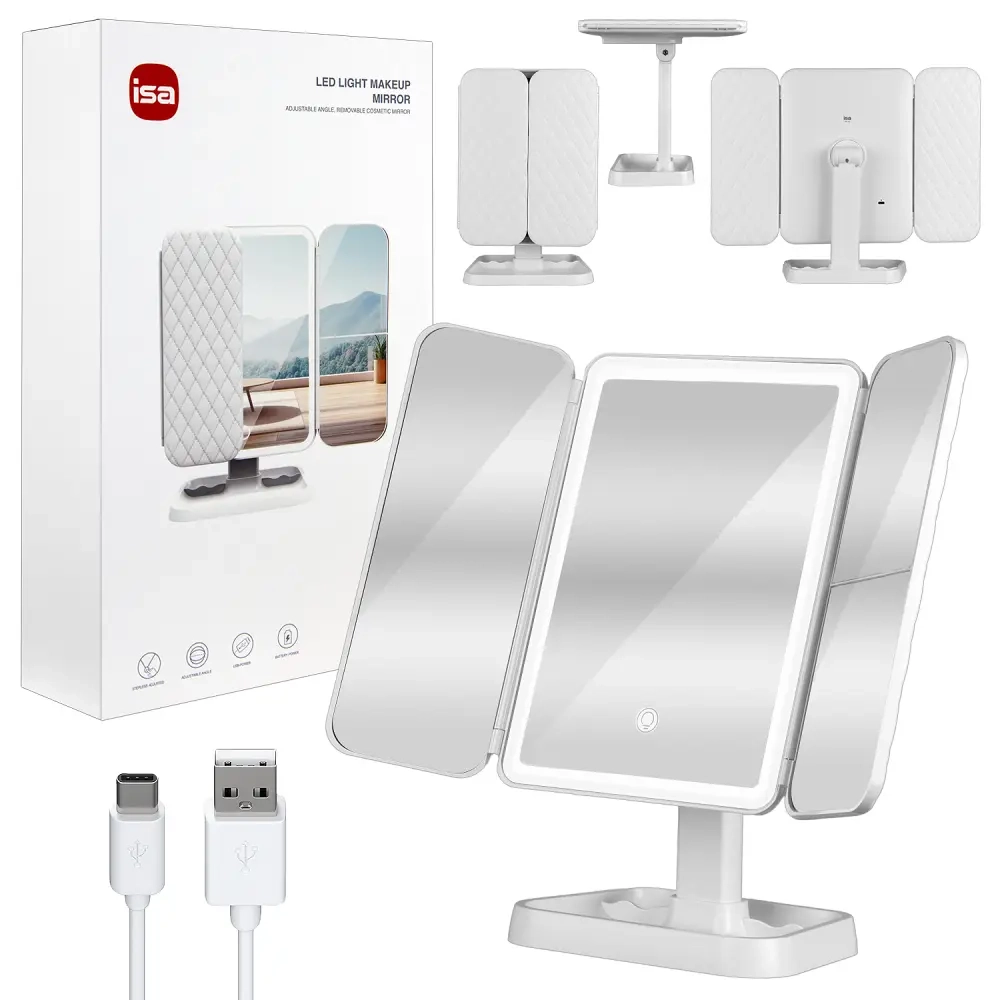 Настольное зеркало для макияжа с подсветкой ML-04 ISA белое